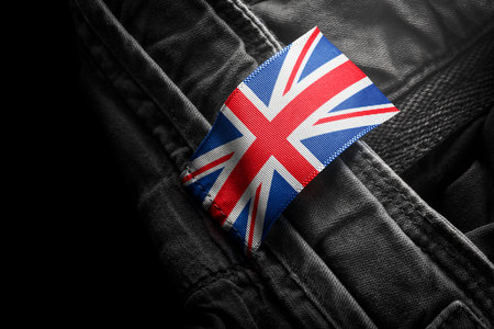 Tag on dark clothing in the form of the flag of the United Kingdom