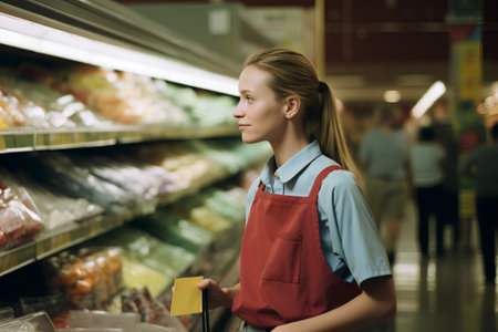 Girl worker of the grocery department in a supermarket