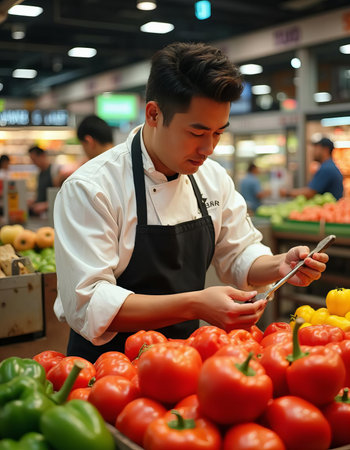 Chef Selecting Fresh Produce in a Grocery Store