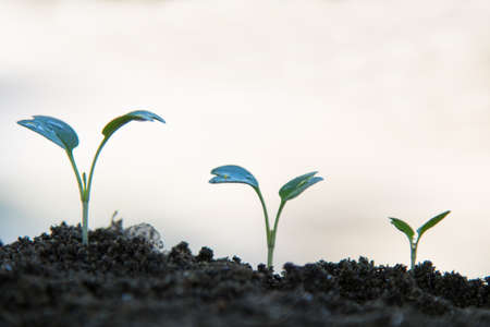 Small trees with green leaves grow naturally, the concept of agriculture and sustainable plant growth.