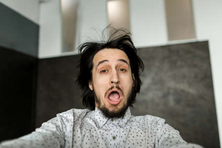 amazed unshaven guy face portrait, express emotions