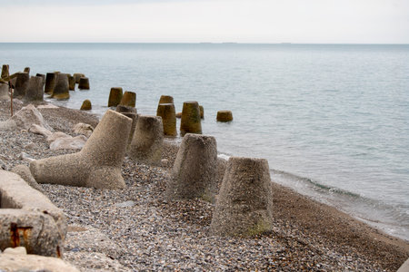 Massive concrete breakwaters to protect the coast from the destructive effects of sea waves.