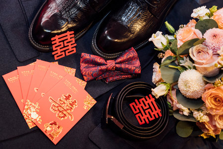 A closeup shot of Chinese wedding groom objects