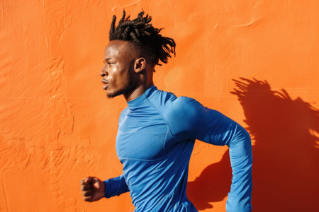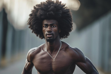 Determined Afro athlete at home. Fit guy. Generate Ai
