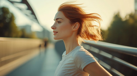 Close-Up of Female Runner: Sunlit Sportswear Detail