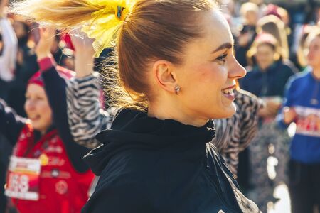 March 8, 2019 Minsk Belarus Women's Day Race on March 8 Women do warm-up before the race on the square
