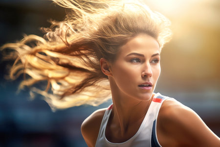 cropped shot of a young female athlete running outdoors, created with generative ai