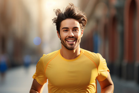 portrait of handsome man who doing sport outdoor, morning jogging. healthy lifestyle
