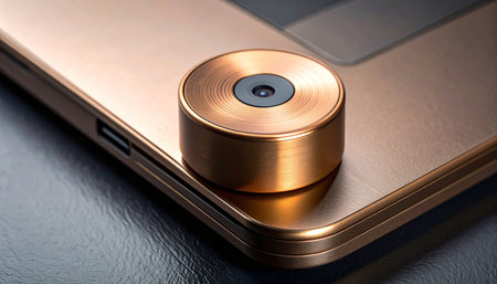 A macro shot focusing on the sleek, metallic corner of a modern electronic device.
