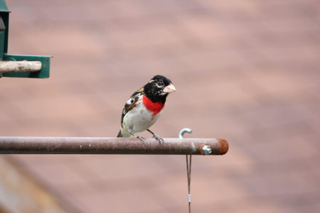 Grosbeak sitting on feeder