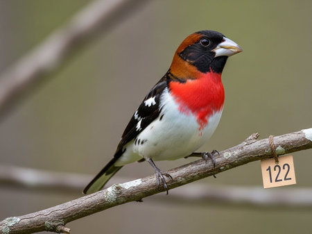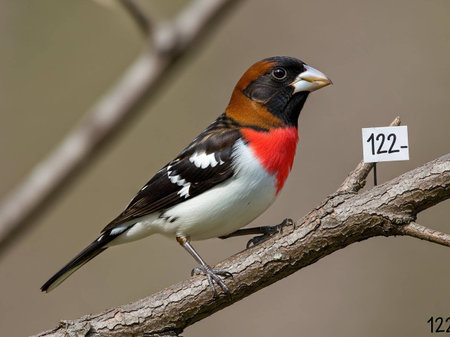 Male of Red-breasted Grosbeak perched on a branch