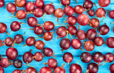Scattered ripe gooseberry on a blue wooden background