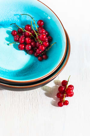 White bowl with red currant berries