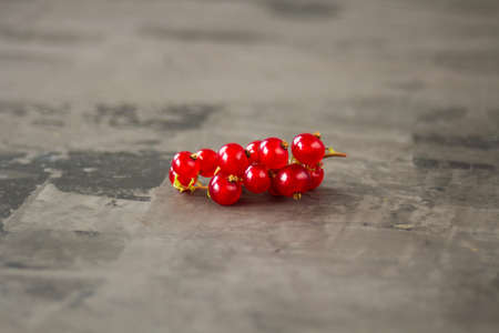 Red currants scattered over a gray texture background. High quality photo