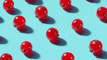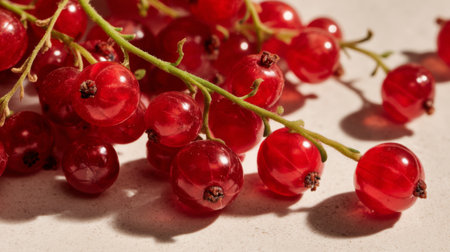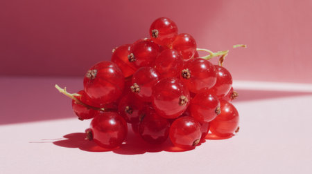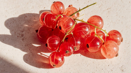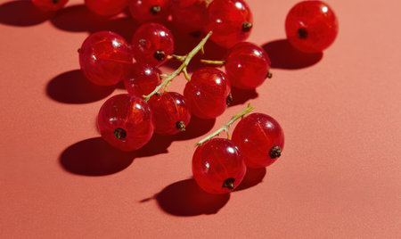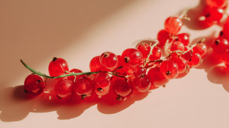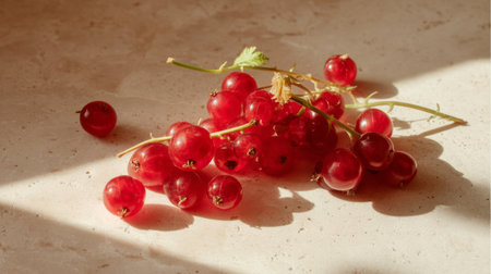 A vibrant arrangement of fresh red currants captures the essence of summer. The bright color and delicate shadows create a stunning visual for culinary inspiration.