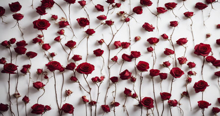 Pile of Beautiful Red Roses on a White Table for Valentine's Day Background
