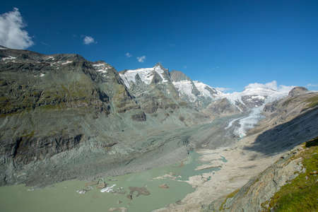 Glacier of Pasterze as of summer 2018 on the Grossglockner range in Austria. Visible decay or dissolution of glacier due to global warming or heating of environment.