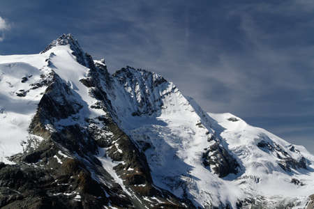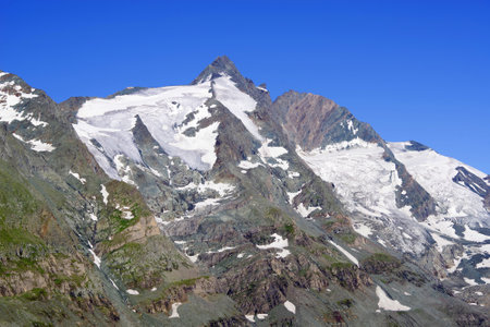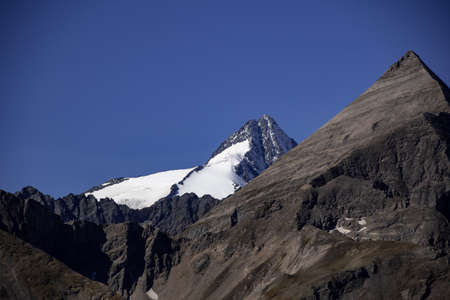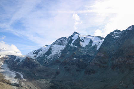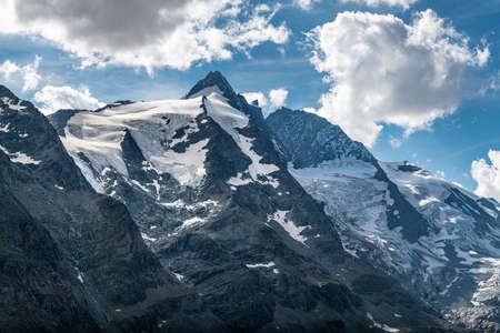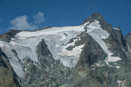 Peak of Grossglocker mountain with snow in summer time. Austria.