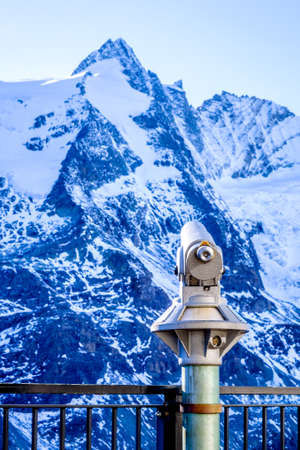 beautiful view of the mountains on the well-known Edelweissspitze viewpoint on a Grossglockner alpine road at the sunset time. Tauern National Park