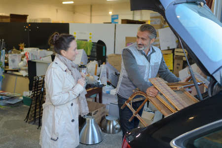 seller helping customer to load her purchases in her car