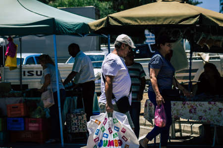 Limassol Cyprus June 06, 2020 View of an unidentified people shopping at the Limassol market in the morning