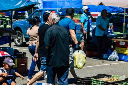 Limassol Cyprus June 13, 2020 Portrait of unidentified people shopping at the Limassol market in the morning