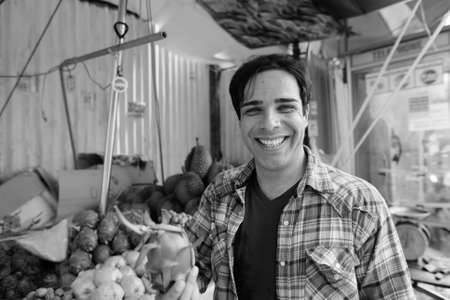 Portrait of handsome Persian tourist man exploring the city