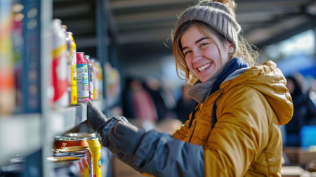 Volunteer accepts canned food donation at food drive