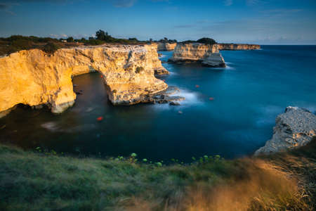 Rocky stacks of Santo Andrea on the coast of Salento in Puglia in Italy
