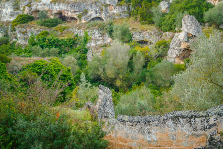 Natural Sceneries of The Latomia del Paradiso in The Neapolis Archaeological Park in Syracuse, Sicily, Italy.