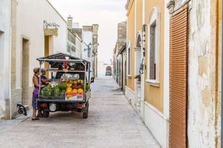 NOCI, ITALY - AUGUST 28, 2018 - Town of Noci in Puglia region in Southern Italy is very lively during the celebrations of San Rocco summer holidays. People shop at central street turned into bazaar