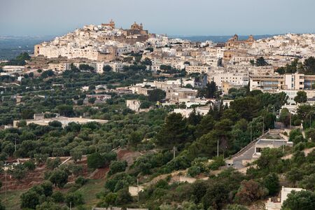 Beautiful view of the city of Ostuni before sunset. Ostuni, Puglia, Italy