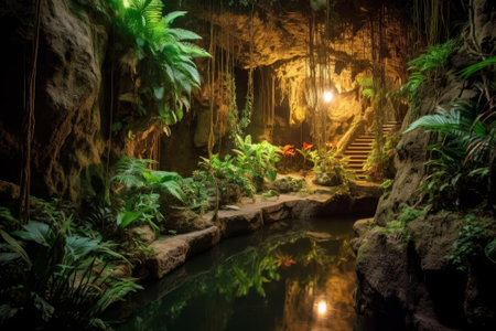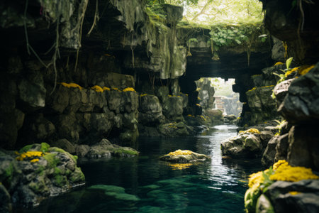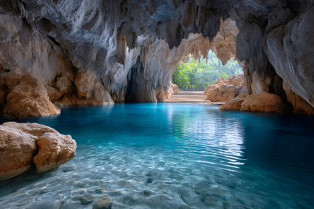 Serene cave pool nestled in lush greenery