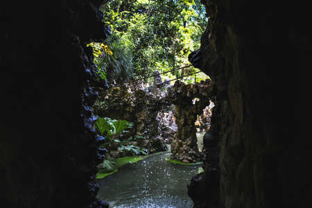 Beautiful waterfall in a cave on the island of Crete, Greece