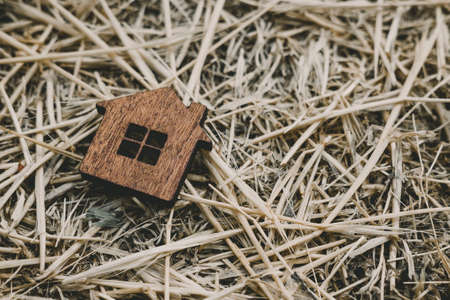 Wooden house toy object on floor background business concept