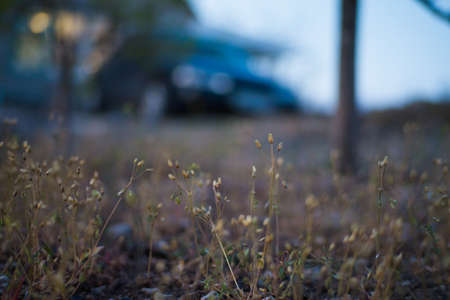 Wild little old flowers in a wild garden that is far beyond the city