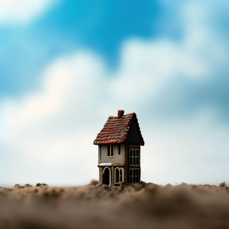 Symbolic Housing Risk: Miniature Home on Earthquake-Damaged Ground