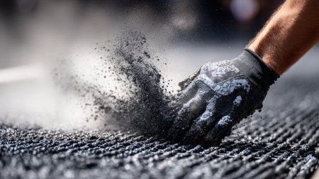A close-up view of shoes hitting a surface, sending up dust and small particles in an energetic display of movement and impact.