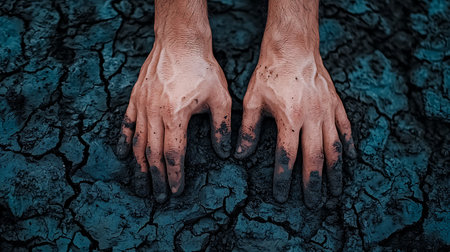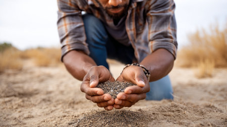 Hands holding dark soil, symbolizing connection to nature and earth. rich texture of soil conveys sense of nurturing and growth, evoking feelings of sustainability and environmental awareness