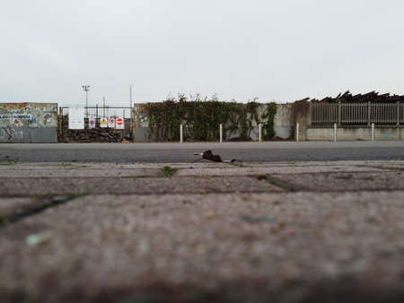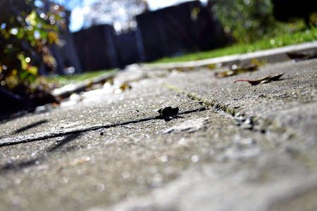 The fallen leaves on the sidewalk in the garden. Selective focus.