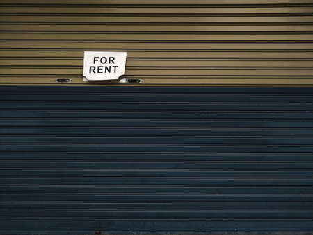roller shutter door of the shophouse with rental notice paper. economic recession and recovery concept.