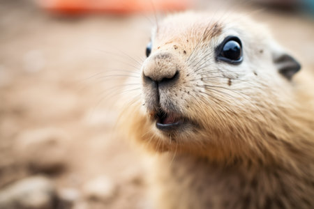 close focus on prairie dog eyes while chirping intensely
