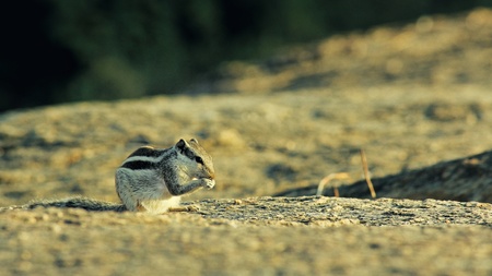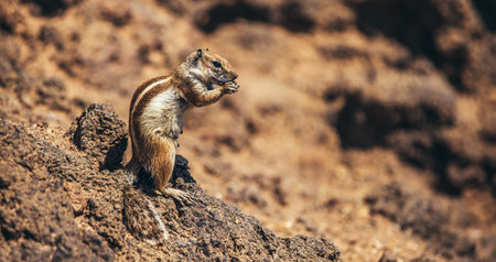 Squirrel eating in natural rocky desert environment