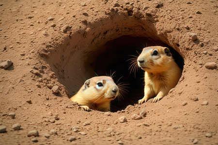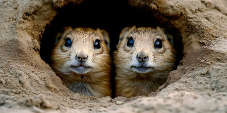 Adorable Prairie Dogs Peeking from Burrow Hole Wildlife Nature Fur Day Cute Eyes Face Head