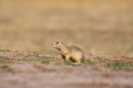 European ground squirrel standing in the field. Wildlife scene from nature.