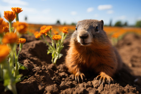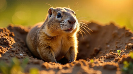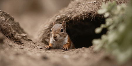 AI Generated. Curious Ground Squirrel Peeking Out of Burrow