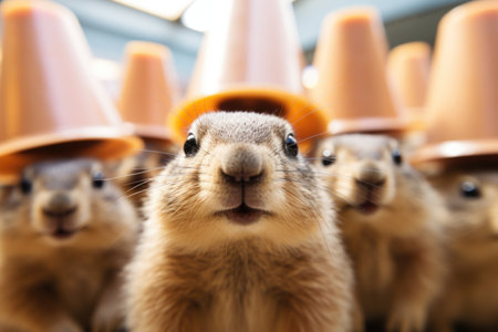 A group of cute rodents holding a camera in the desert
