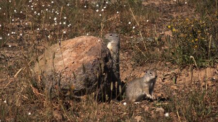 Close-up of a Ground squirrel on a rock in the sun