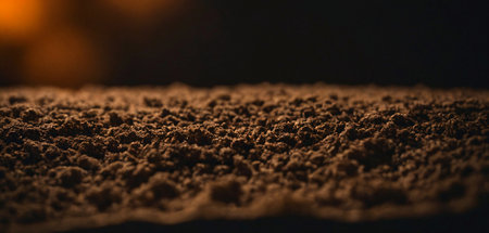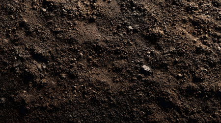 Captivating close-up of rich, dark soil or powder reveals intricate textures. Its organic, earthy feel creates a versatile, natural background for diverse projects.