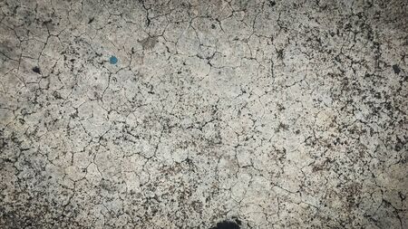 Cracked ground with dry leaves, cracked ground for background. Top view and close-up